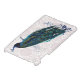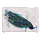 A colourful peacock on a soft pink damask background. Personalise with your monogram or delete the letter field.