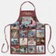 Monogrammed Photo Collage Pattern Burgundy & Gold Apron