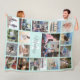 Monogrammed Photo Collage Teal Blue & Grey Script Fleece Blanket