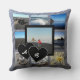 Monogrammed throw pillow showing square or instagram travel photos as collage. Make it an object to bring travel memories into your home by exchanging the photos with your own photos.