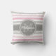 Monogrammed Pink and Grey Paint Stripes Pattern Cushion