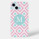 Monogrammed Pink and Mint Diamonds Ikat Pattern Case-Mate iPhone Case