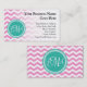 Monogrammed Pink and Teal Chevron Custom Business Card