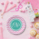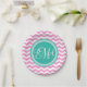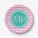 Monogrammed Pink and Teal Chevron Custom Paper Plate