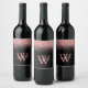 Monogrammed Pink Black Elegant Script Name Wine Label