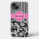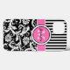 Monogrammed modern pink, black, and white stripes with damask Case-Mate iPhone Case.