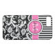 Monogrammed Pink, Black, White Striped Damask Case-Mate iPhone Case