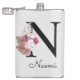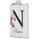 Monogrammed Pink Boho Floral Initial N Hip Flask