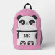 Monogrammed Pink Cute Panda Kids Printed Backpack
