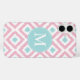 Monogrammed Pink Mint Diamond Ikat Pattern Case-Mate iPhone Case