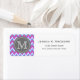 Cool cute geometric trendy pink, purple, blue and white zigzag chevron pattern with grey nameplate for your custom monogram initial letter. Chic monogrammed modern address labels.