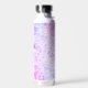 Design features a pink and purple marbled background on both front and back. Front features the initial you supply in a fun, purple font.