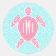 Monogrammed Pink Sea Turtle + Blue Quatrefoil Classic Round Sticker