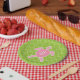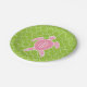 A gift featuring an illustration of a pink sea turtle. Personalise with your monogram on turtle's shell. Background is lime green quatrefoil pattern.