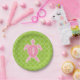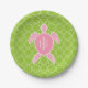 Monogrammed Pink Sea Turtle Green Quatrefoil Paper Plate