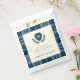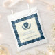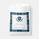 For the mother-to-be who is expecting a baby boy. Navy blue plaid monogrammed baby shower thank you favour bags which can be personalised with the inclusion of your baby shower details. Include your monogram initial which will appear within the crest design. The design is elegant, preppy and classic and perfect for the mother-to-be who is expecting a little boy.