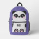 Monogrammed Purple Cute Panda Kids Printed Backpack