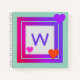 Monogrammed Purple Pink Orange Red Hearts on Teal Notebook