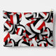 This volleyball themed zipper pouch features a random pattern of varied size red, black & white volleyballs turned every which way on a white background - customise with the volleyball player's monogram - by katz_d_zynes