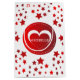 Cute red stars pattern and white heart in red circle. Optional monogram