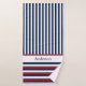Monogrammed Red, white and blue stripe Nautical bath towels. Personalise with your own name. This display shows the bath towel folded in half, look at the image unfolded to see the monogram for those who fold their towels in thirds.