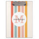 Monogrammed Retro Colourful Stripes Personalised Clipboard
