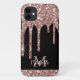 Modern, girly rose gold glitter drips name and monogrammed iphone case. This design features blush pink rose gold glitter sparkle drips on black background with custom personalised monogram initial and first name text template. Perfect feminine gift. If you need help or matching items, please contact to me.