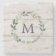 Monogrammed Rustic Green Sage Leaf Wreath Stone Coaster