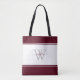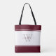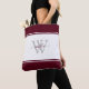 Girly modern minimalist script personalised trendy monogram tote bag. The elegant burgundy stylish script matches the line design in colour but offsets it in style, creating a fun twist to the minimalist look.