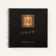 Luxury exclusive looking name signature script, double monogram and your text office or personal spiral notebook featuring a faux copper metallic gold glitter square over a stylish black faux leather (PRINTED) background. ++++++++++++++ Suitable for small business, corporate or independent business professionals, students, personal branding or stylists specialists, makeup artists or beauty salons, and boutique or store managers.