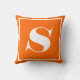 monogrammed solid orange white initial cushion