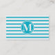 Monogrammed Stripes Pattern Scuba Blue Business Card