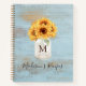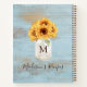 Monogrammed Sunflower Mason Jar Blue Wood Recipe Notebook
