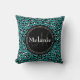 Monogrammed Teal Black White Leopard Pattern Cushion