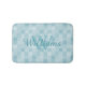 Monogrammed teal blue mosaic tile pattern bath mat. Modern non slip shower rug with custom name. Trendy mozaic design with customisable background colour. Chic stylish typography for monogram initial letters, quote or name. Create your own personalised classy bathroom interior with this trendy tiled print template. Modern monogram home decor for your house or hotel. Unique gift for new home / housewarming party. Elegant colour shades. Available in small medium and extra large big size.