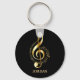 Modern shiny gold treble clef with notes on black background. Optional monogram