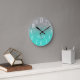 Create your own personalised monogram turquoise and faux silver grey glitter ombre wall clock.