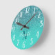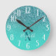 Monogrammed Turquoise and Teal Glitter Ombre Round Clock