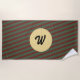 monogrammed Vintage Red & green Stripe pattern Beach Towel