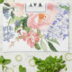 Elevate your dining table setting with our Monogrammed Watercolor Blue Pink Spring Floral kitchen towel. Featuring a pastel palette of blue hydrangea, pink peony, and rose, this is a blooming piece that match with spring season.