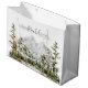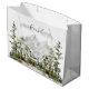 Make your gift extra special with this monogrammed large gift bag! Featuring elegant watercolor mountains, green pine trees, and rustic woodland charm.