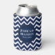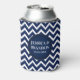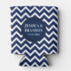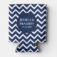 Monogrammed White & Blue Geometric Zigzag Chevron Can Cooler