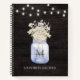 Monogrammed White Daisy Flower Black Wooden Recipe Notebook