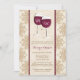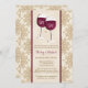 These elegant monogrammed red wine glass invitations with a fancy gold ornament and heart pattern background and burgundy and wine coloured printed ribbon look trim with gold look stitching is perfect for a wine tasting, cocktail party or vineyard themed couples wedding or engagement shower. Add the initials of the bride and groom to be on each glass. Artwork © Chrissy H. Studios, LLC. All rights reserved.