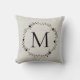 Add couple's monogrammed initial to the front and full names and established date to the back of decorative wreath pillow with linen effect background