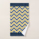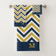 Monogram bath towel set with a trendy chevron pattern in blue and yellow.
