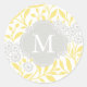 Monogrammed Yellow Grey Floral Damask Pattern Classic Round Sticker