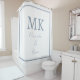 Monograms Dusty Blue White Modern Minimal Trendy Shower Curtain