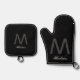 Monograms Wedding Gift Favour Elegant Grey Black Oven Mitt & Pot Holder Set