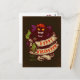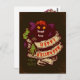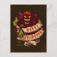Vintage postcard with angry monster and old ribbon for Halloween. Vintage Halloween postcard. Retro card with monster for Halloween.